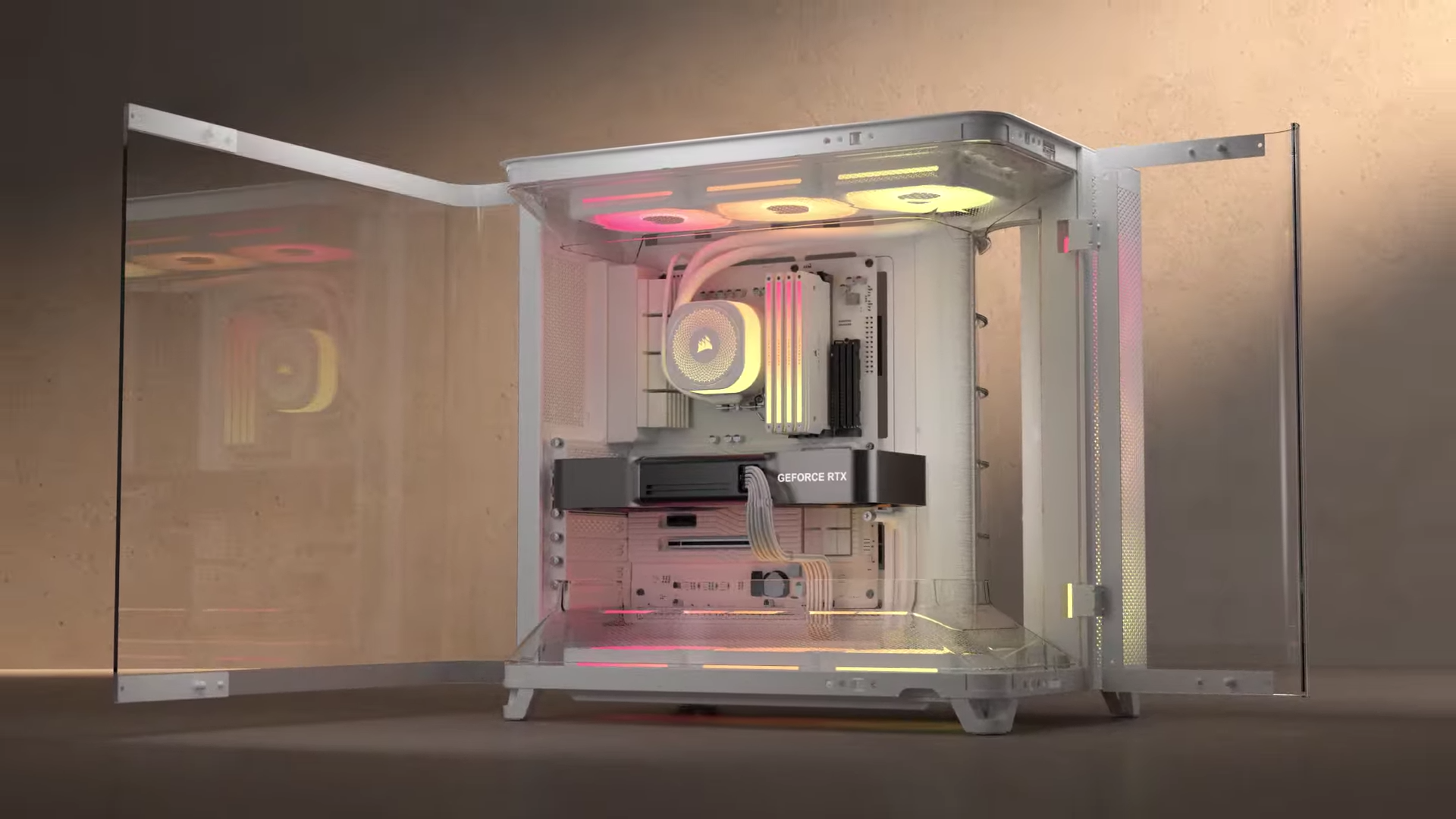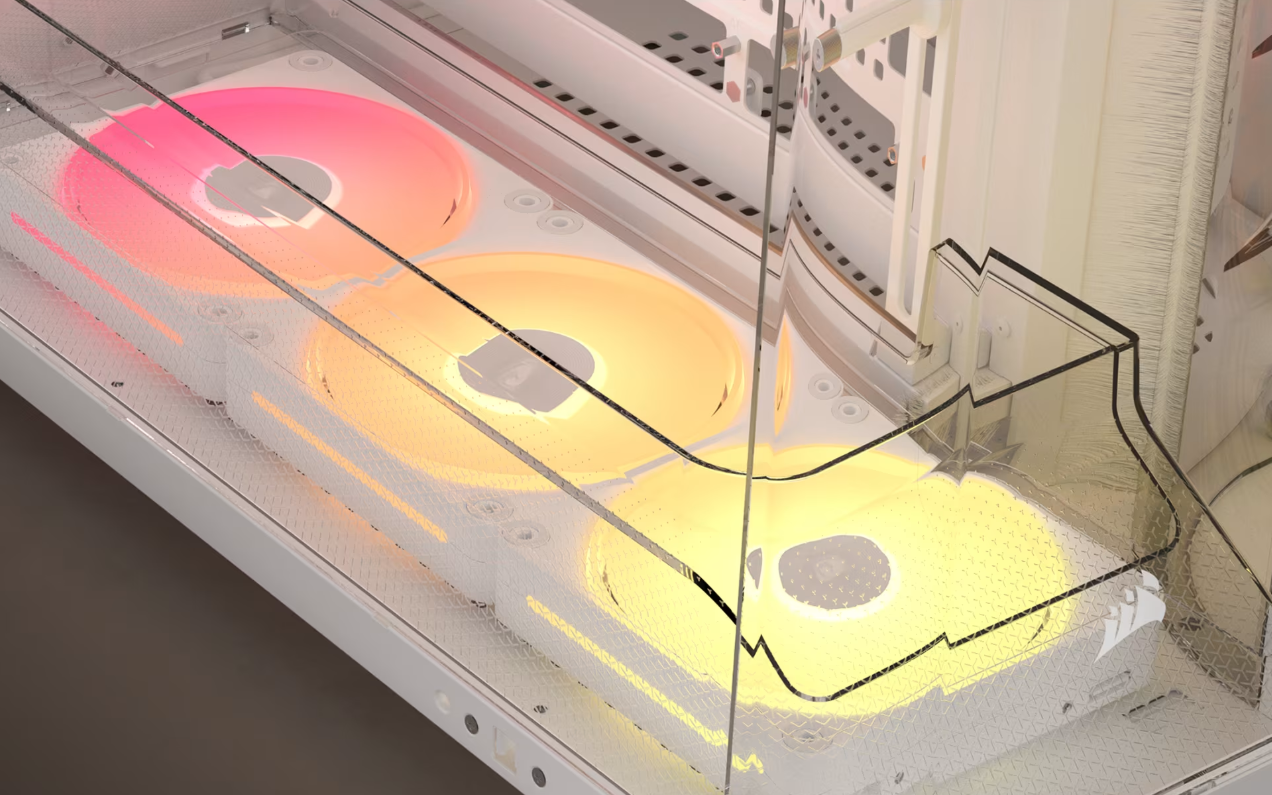 Preinstalled reverse-rotor iCUE LINK LX-R RGB 120mm fans in the bottom of the chassis allow for efficient, low-noise cooling with glorious, unobstructed RGB lighting.