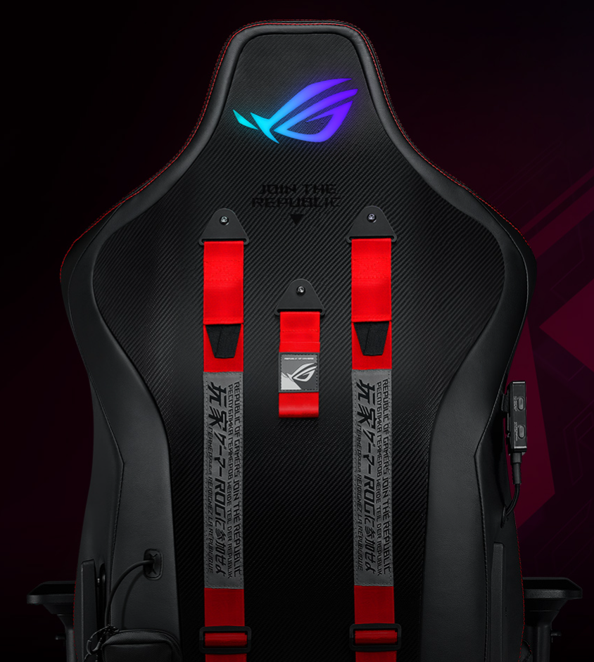 ROG Chariot Gaming Chair evokes the style and sensation of taking the driving seat of high-end racing car, with integrated Aura RGB illumination for pole-position aesthetics. With adjustable head and memory-form lumbar support , breathable PU leather, 4D-adjustable armrests, lockable tilt mechanism and highly-durable components, Chariot cossets you in safe, comfortable style – and empowers you to project your own personality in any gaming arena.