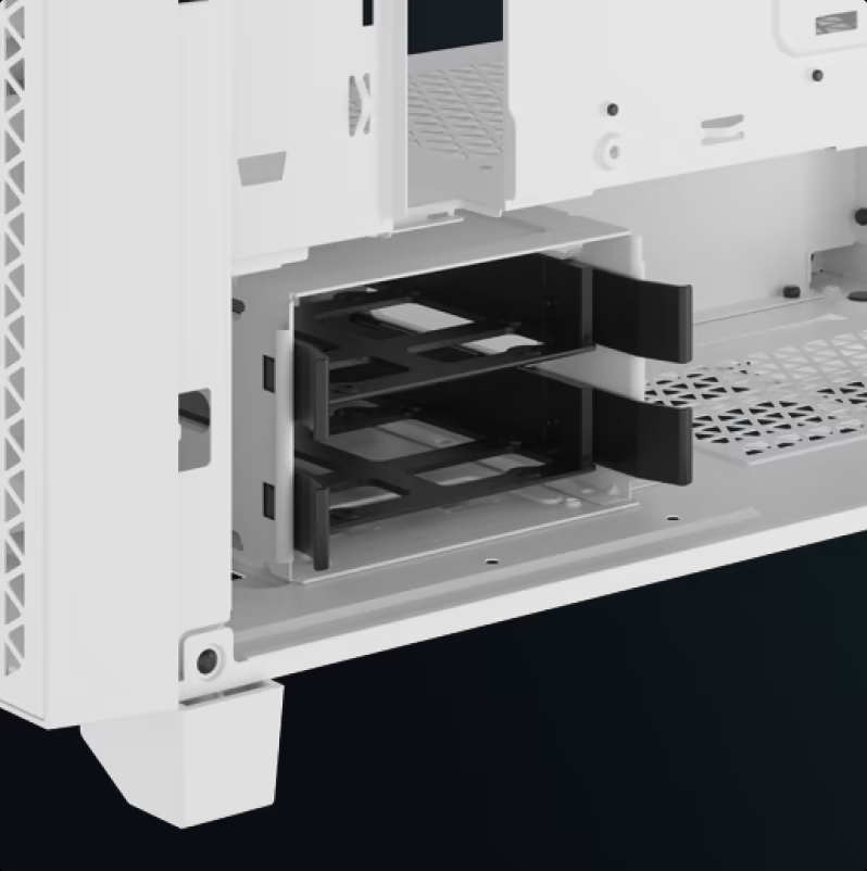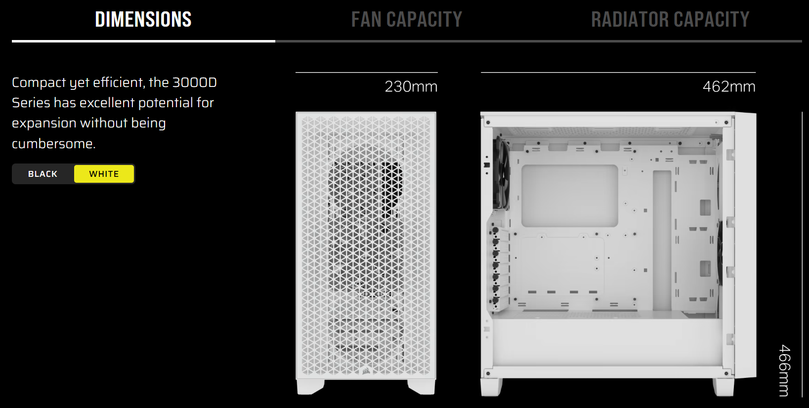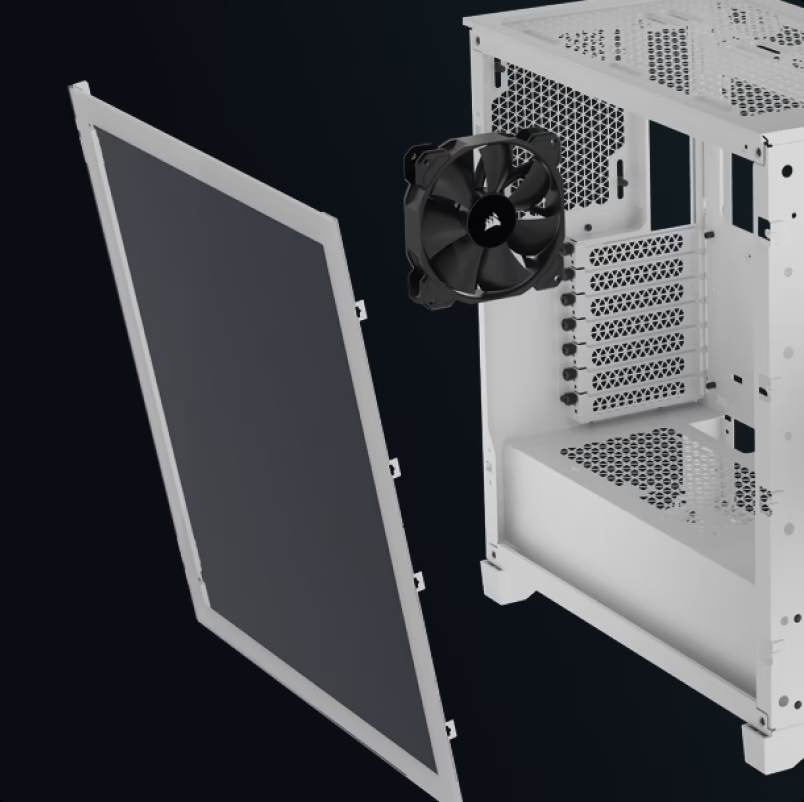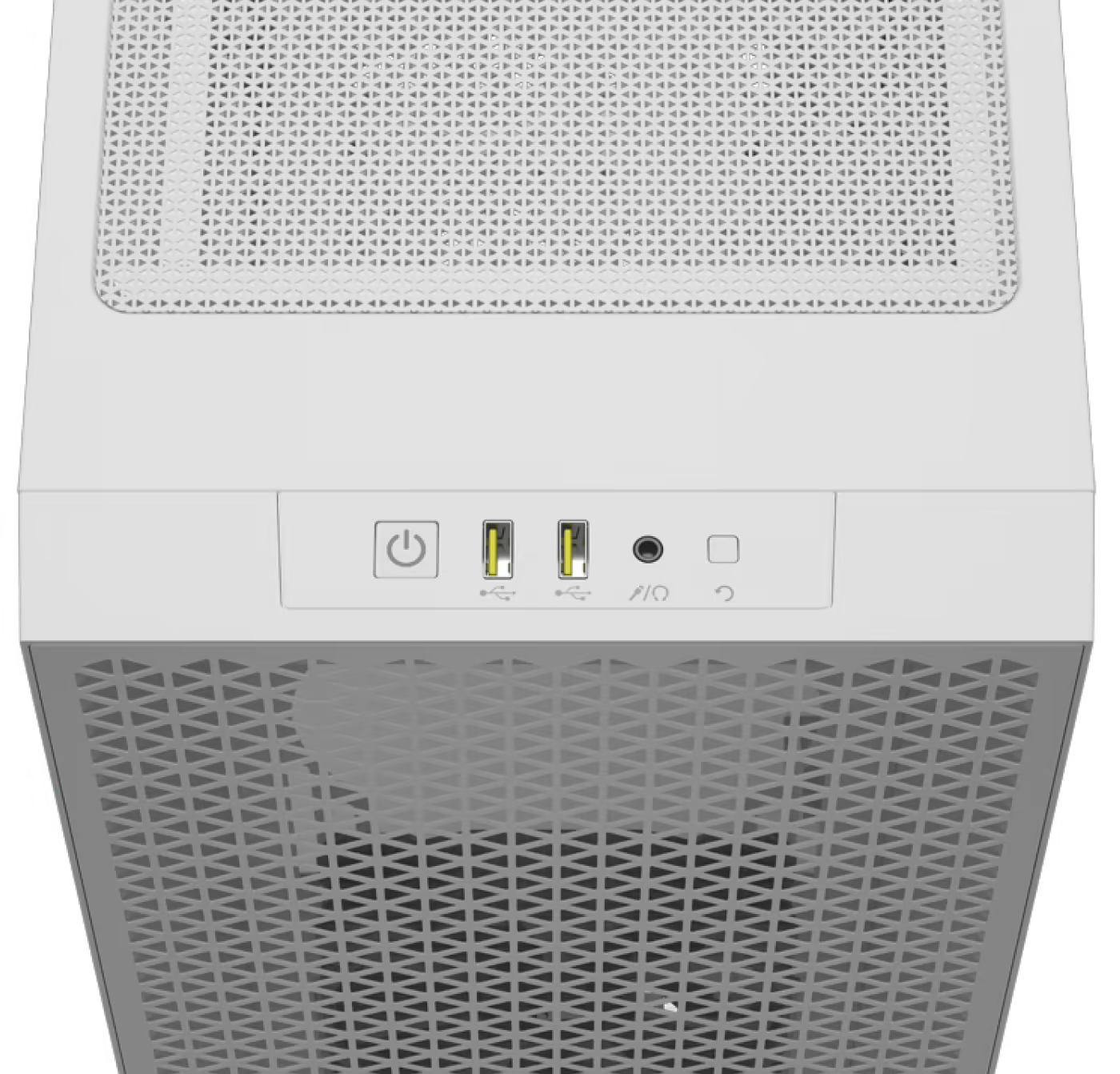 The CORSAIR 3000D AIRFLOW WHITE presents a mid-tower ATX chassis with an efficient high-airflow design, including two pre-fitted CORSAIR SP120 fans that provide exceptional airflow.