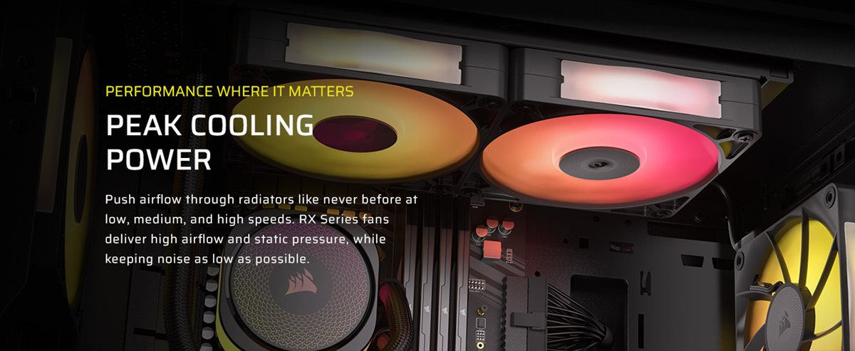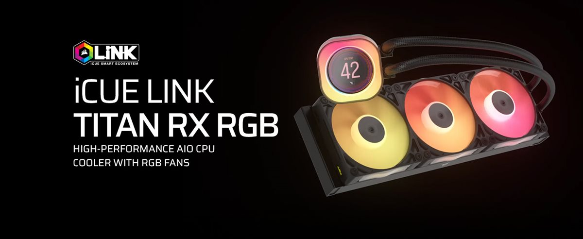 The CORSAIR iCUE LINK TITAN RX RGB delivers high-performance, ultra-quiet cooling with optimized thermal performance, streamlined iCUE LINK connectivity, and dynamic RGB lighting.