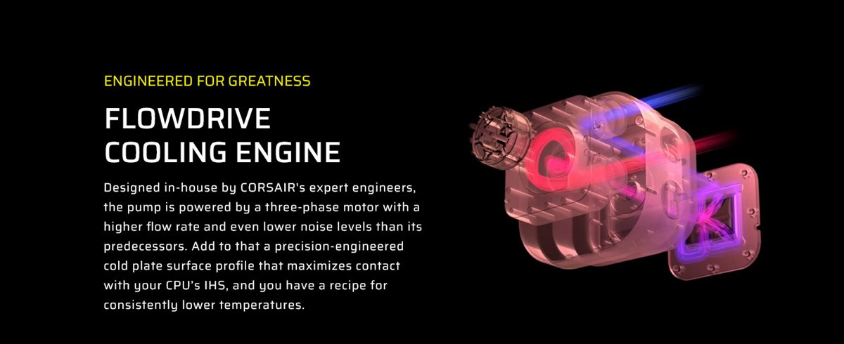 - FlowDrive cooling engine with three-phase motor for peak thermal efficiency