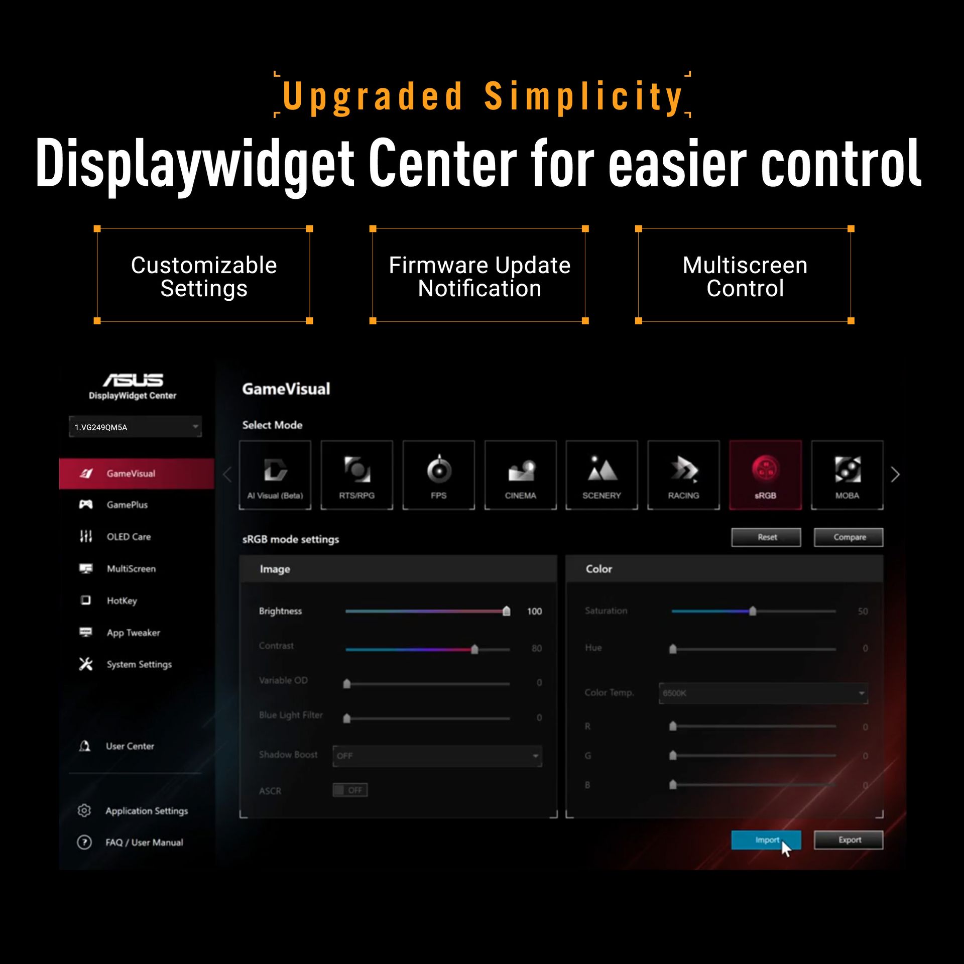 - DisplayWidget Center enables easy OSD access and monitor settings adjustments with a mouse