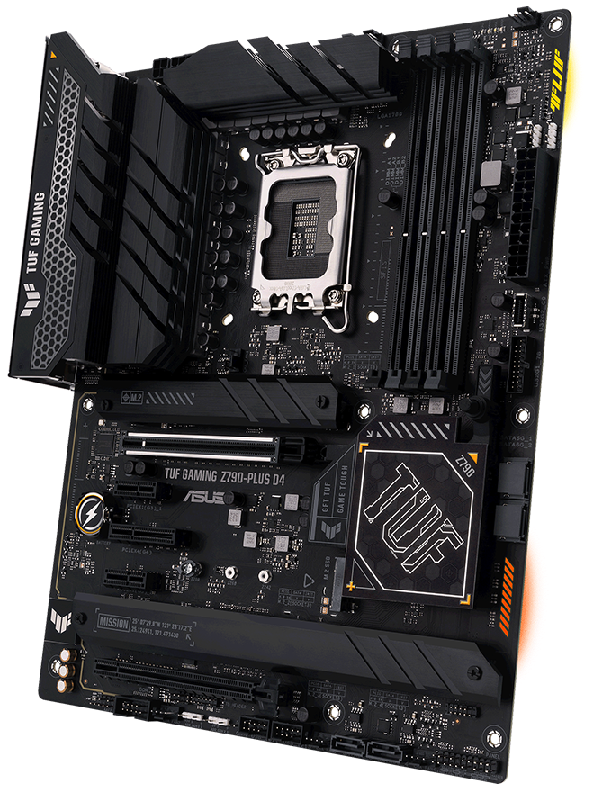 TUF GAMING Z790-PLUS D4 takes all the essential elements of the latest Intel® processors and combines them with game-ready features and proven durability. Engineered with military-grade components, an upgraded power solution and a comprehensive cooling system, this motherboard goes beyond expectations with rock-solid performance for marathon gaming. TUF GAMING motherboards also undergo rigorous endurance testing to ensure that they can handle conditions where others may fail. Aesthetically, this model incorporates an embossed nameplate and honeycomb design elements to reflect the dependability and stability that defines the TUF GAMING series. This platform delivers the power and connectivity that advanced AI PC applications demand.