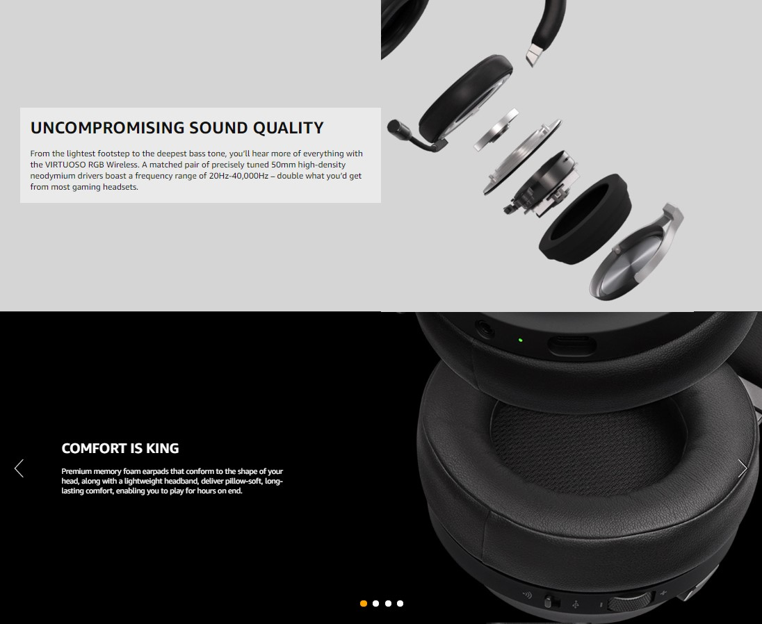 The CORSAIR VIRTUOSO RGB Wireless delivers a high-fidelity audio experience, all-day comfort from its premium memory foam earpads, and hyper-fast connectivity with SLIPSTREAM WIRELESS technology.
