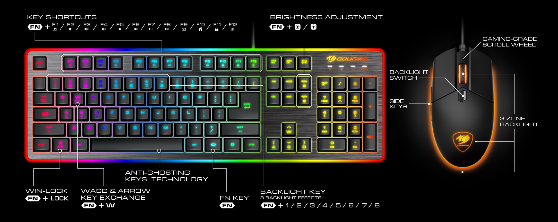 Hybrid mechanical switches and anti ghosting technology join the mouse’s adjustable DPI, and 1000 Hz polling rate to provide quick, accurate and reliable responses for your commands. In addition, 8 backlight effects to make your gaming life more glorious.