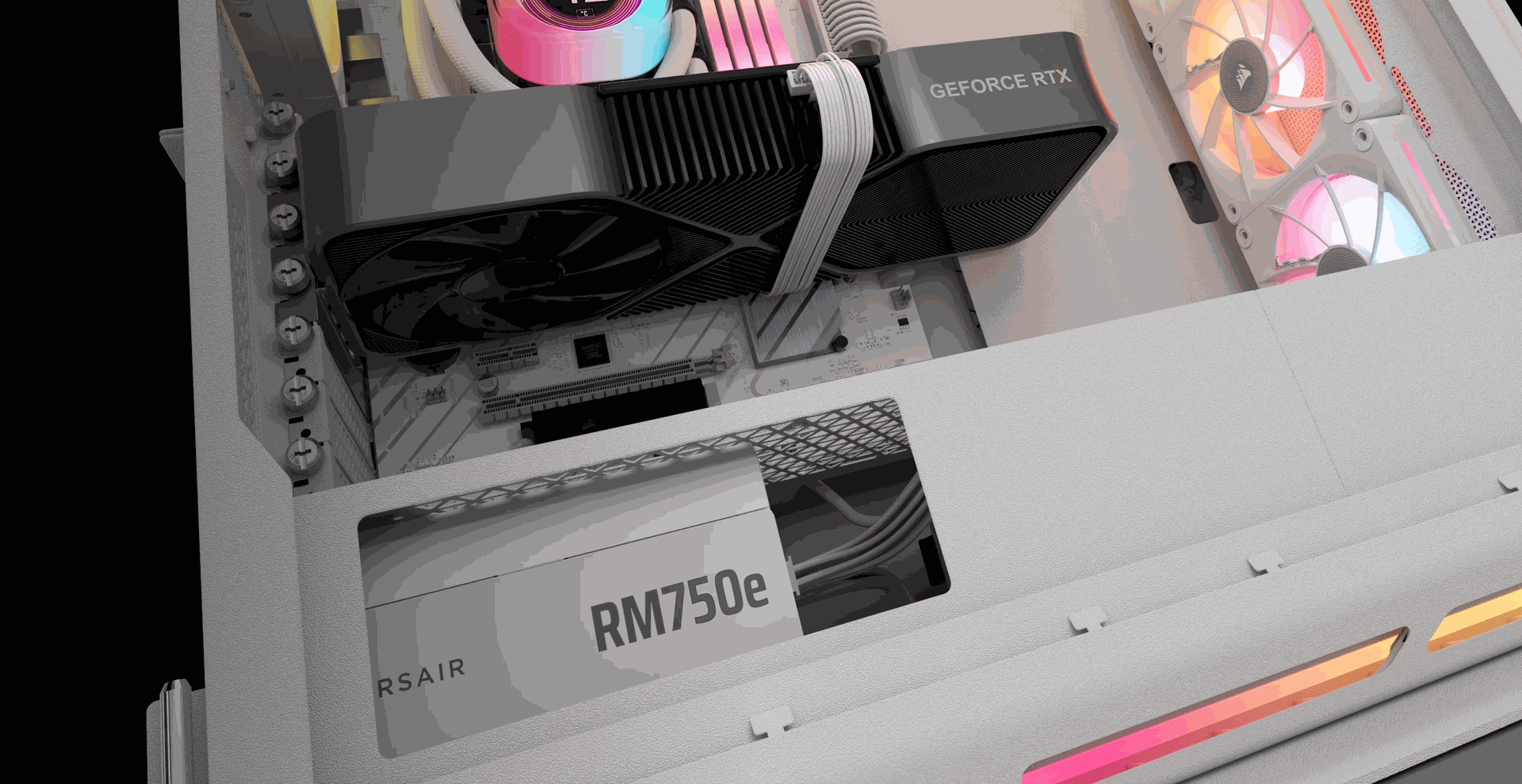 CORSAIR RMe Series Fully Modular Low-Noise Power Supplies include a dedicated 12V-2x6 GPU power cable, ATX 3.1 certification and PCIe 5.1 compliance, and Cybenetics™ Gold rated efficiency for a quiet, reliable build. The RMe PSUs' compact size also allow for easier cable management.