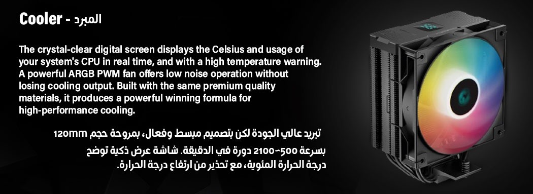 | المبردات | Thermalright Assassin X 120 R Digital ARGB BLACK Cooler (customized Intel) |