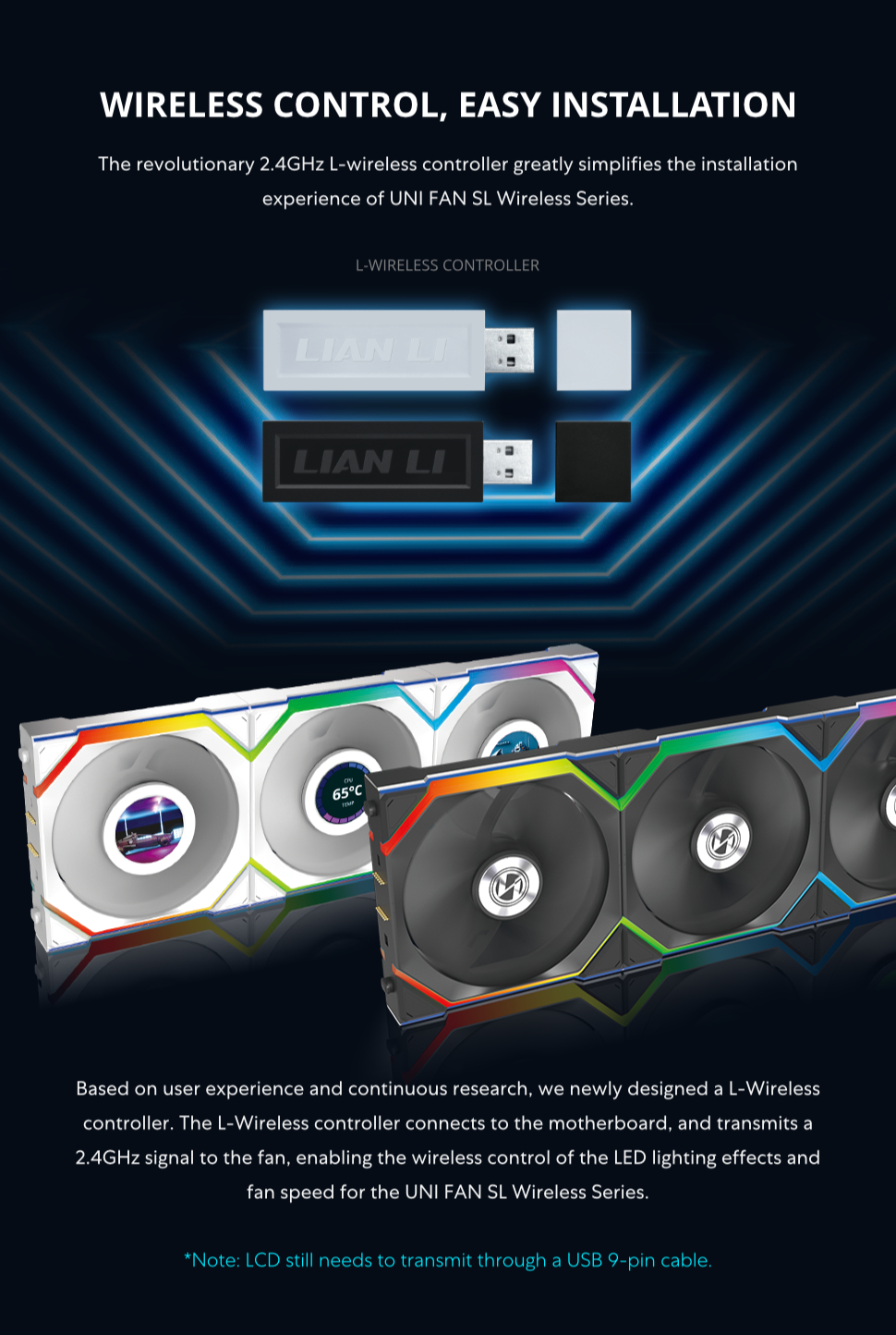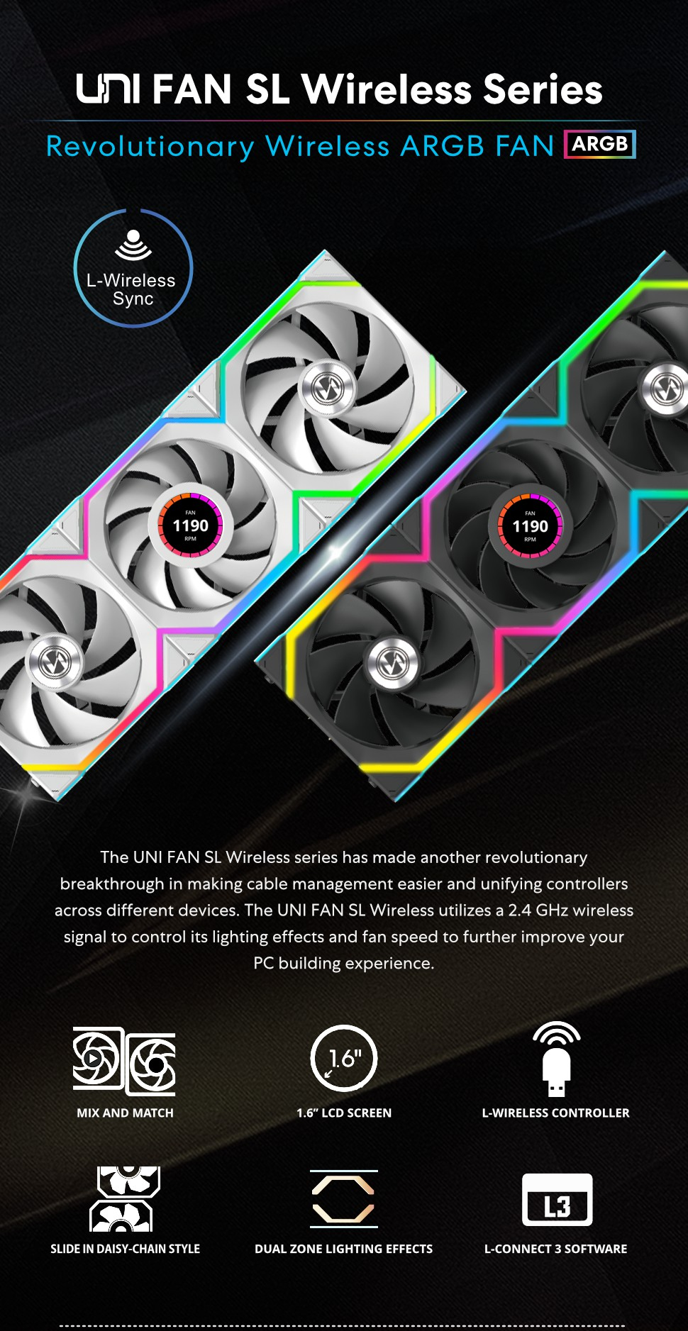 - Full software control for fan speed, lighting effects, and LCD screen display via L-Connect 3